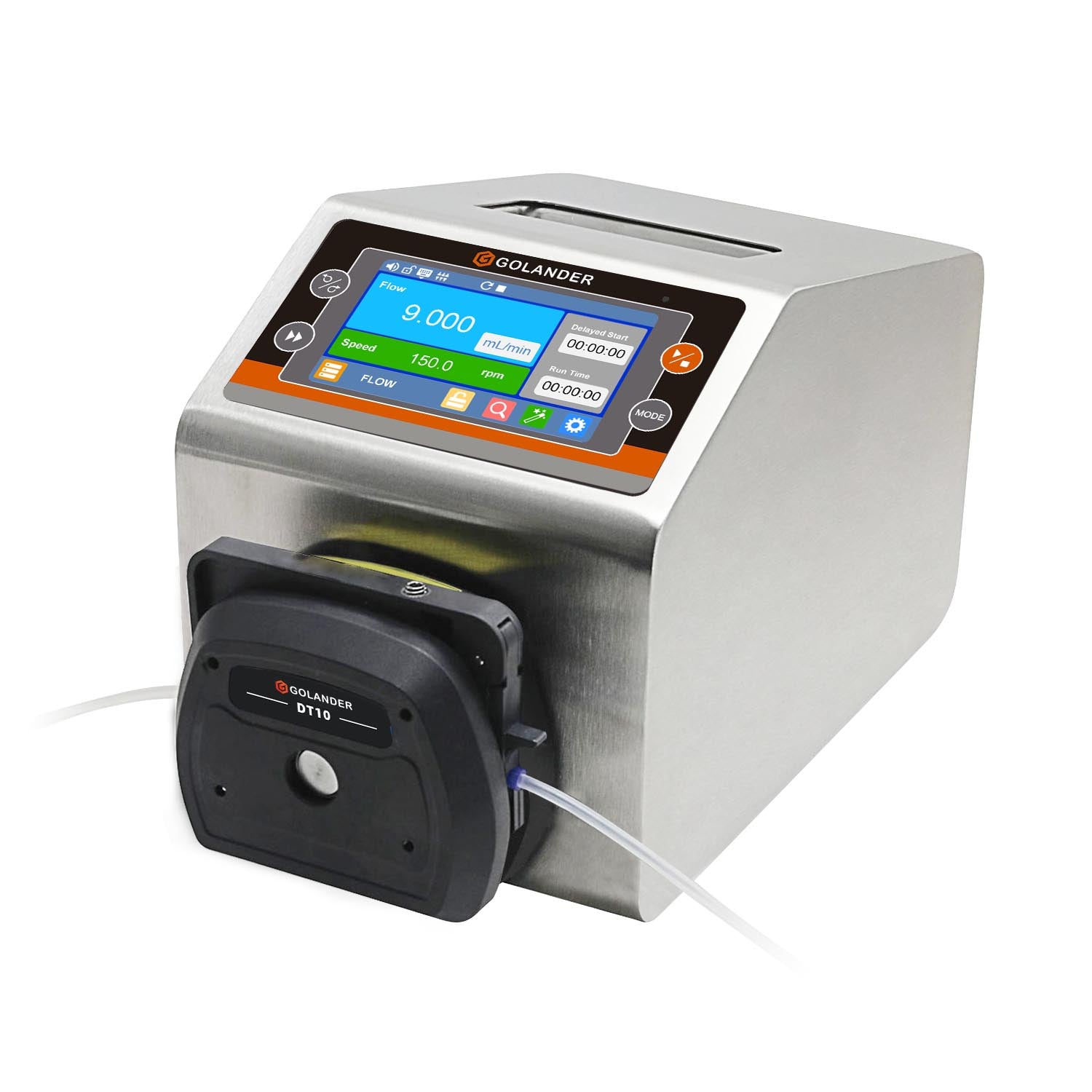 BT100L Intelligent peristaltic pump provides flow range from 0.00011 to 720mL/min with variable pump heads and tubings. It offers not only intuitive and clear interface with color LCD touch screen, but also advanced features such as flow rate calibration and anti-drip function for accurate flow transfer. Easy Dispense Mode is available to dispense the recorded volume by pressing the DISPENSE key or using a footswitch. The system minimizes working noise due to the intelligent cooling fan control. With RS485 MODBUS interface, the pump is easy to communicate with external device, such as PC, HMI or PLC.